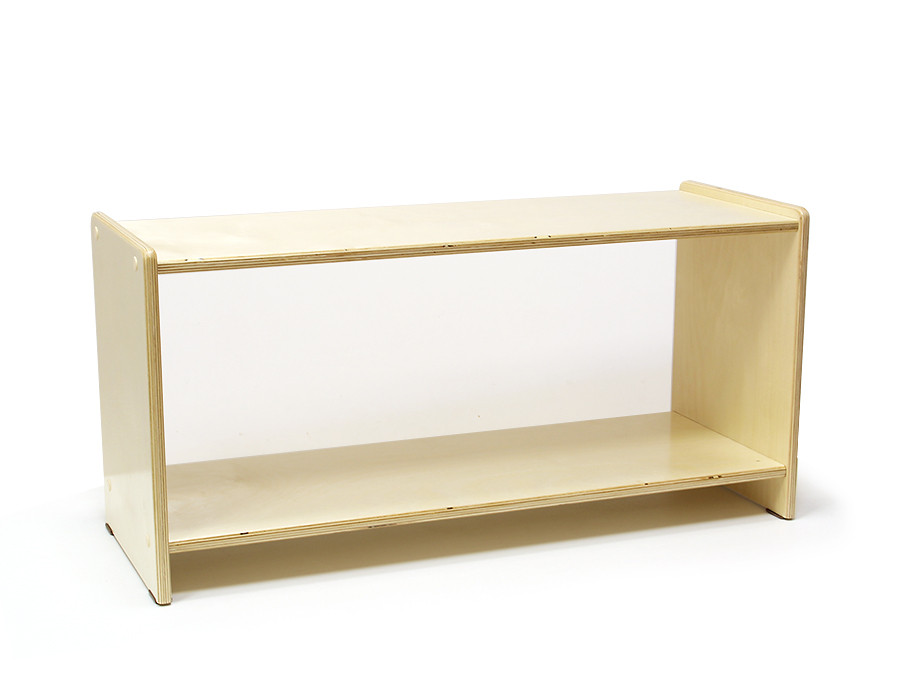 Низкие открытые полки для размещения игрушек и других предметов ребёнка. Низкая высота позволяет ребёнку самостоятельно брать и класть предметы. Отсутствие дверец позволяет ребёнку видеть предметы и делать выбор осознанно.
